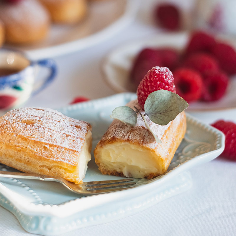 · 50g 버터. · 캐스터 설탕 2 그램. · 소금 1g. · 100 그램의 물. · 낮은 글루텐 밀가루 63 그램. · 계란 3 개 (각각 약 50g). · 크림 충전재. · 250 그램의 라이트 크림. · 가루 Suga 15 그램. | 1 단계 : 100g의 물과 50g의 버터를 깊은 팬에 붓고 설탕 2g과 소금 1g을 넣습니다. 2 단계 : 30 초 동안 끓인 후, 열을 내리고 63g의 미리 압력 저 강도 밀가루를 한 번에 붓습니다. 쏟아지 자마자 수동 계란 비터를 사용하여 냄비 벽에 응고 된 재료가있을 때까지 뜨거운 반죽으로 빠르게 저어줍니다. 열을 끄고 저어주지 마십시오. 3 단계 : 반죽이 따뜻할 때 매번 3 개의 개별 배치에 계란 3 개를 넣고 매번 철저히 저어줍니다. 4 단계 : 반죽을 장식용 가방에 넣고 그리스가 든 베이킹 트레이에 넣습니다. 5 단계 : 오븐을 예열하고 팬을 오븐의 중간 또는 중간에 190-200 ℃에서 20-25 분 동안 놓습니다. 6 단계 : 구운 퍼프를 즉시 제거하고 크림 채우기를 식히고 짜내십시오. 크림을 채찍하려면 250g의 라이트 크림에 15g의 착빙 설탕을 넣어야합니다. 7 단계 : 휘핑 크림을 장식 가방에 넣습니다. 장식 팁은 퍼프 바닥에 작은 구멍을 뚫어 휘핑 크림을 짜냅니다. |